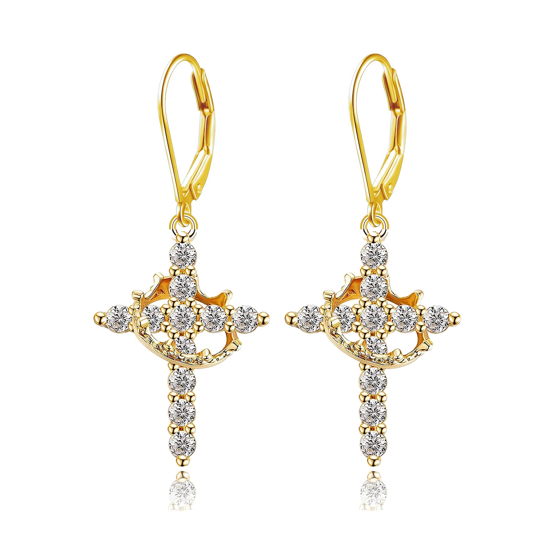 3A Zircon Crown Cross Movable Stainless Steel Ear Clip