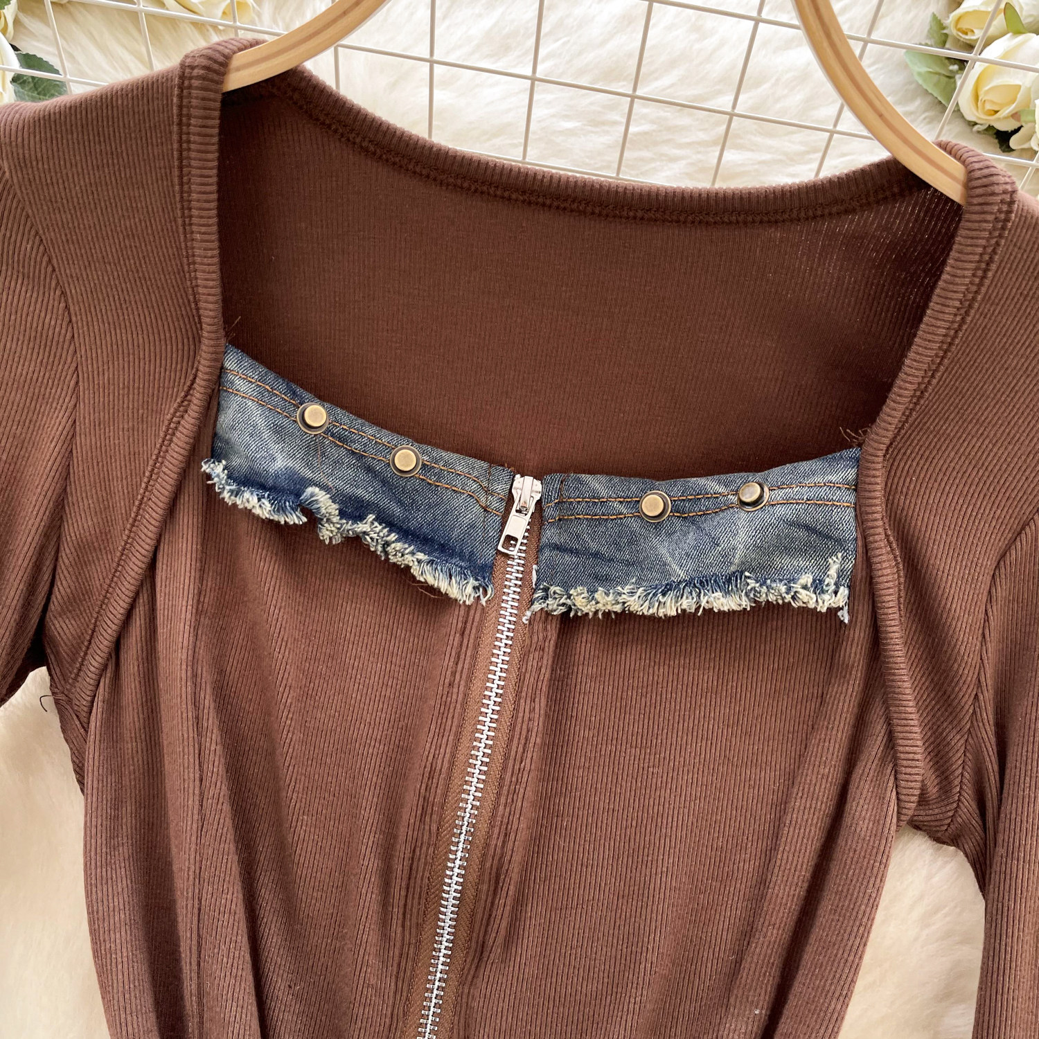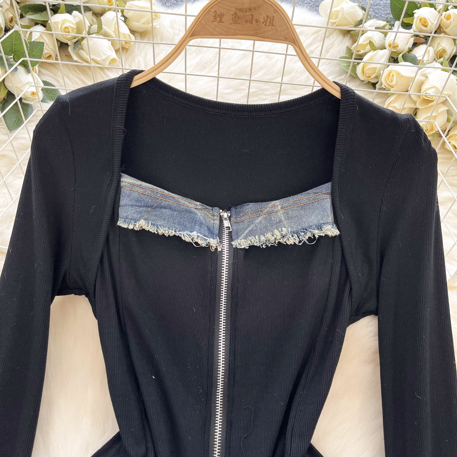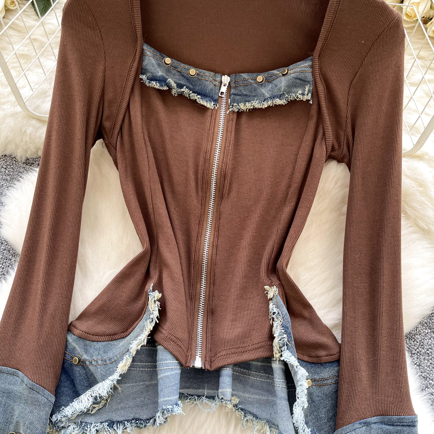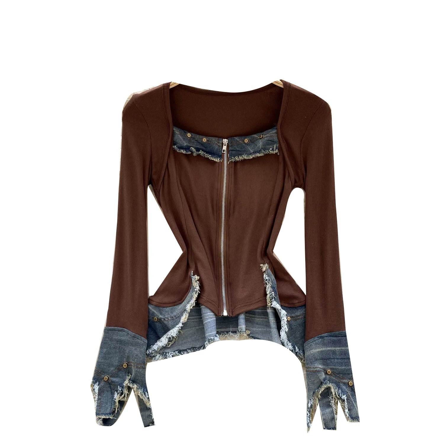 Autumn Full Sleeve Others Collar Casual Denim Blouses Women Patchwork Zippers Shirts Ladies Retro Tops Clothes Women Wholesale