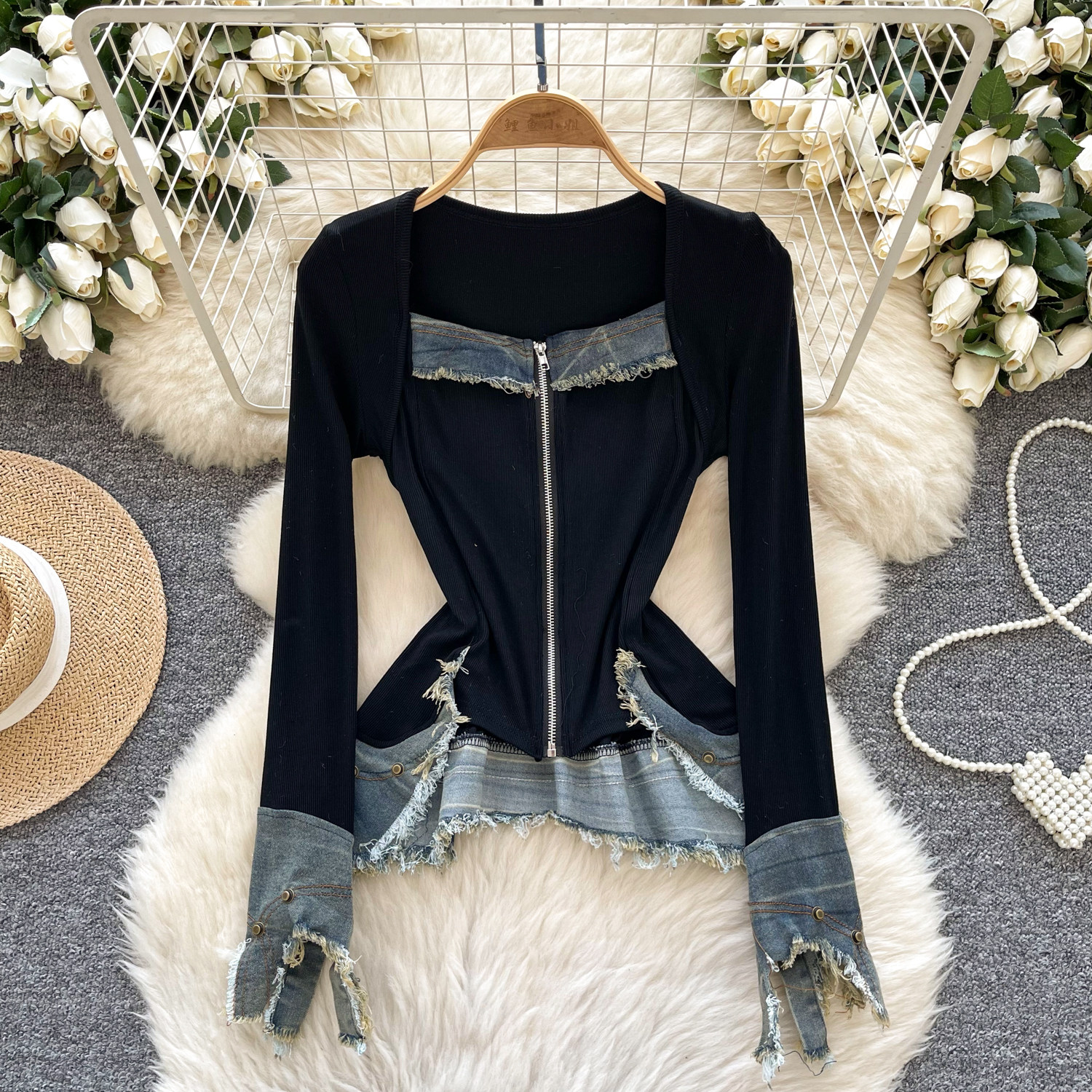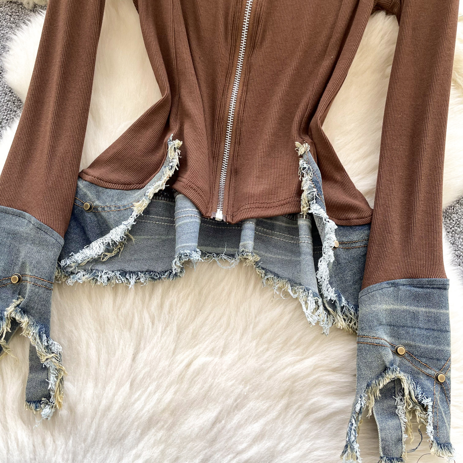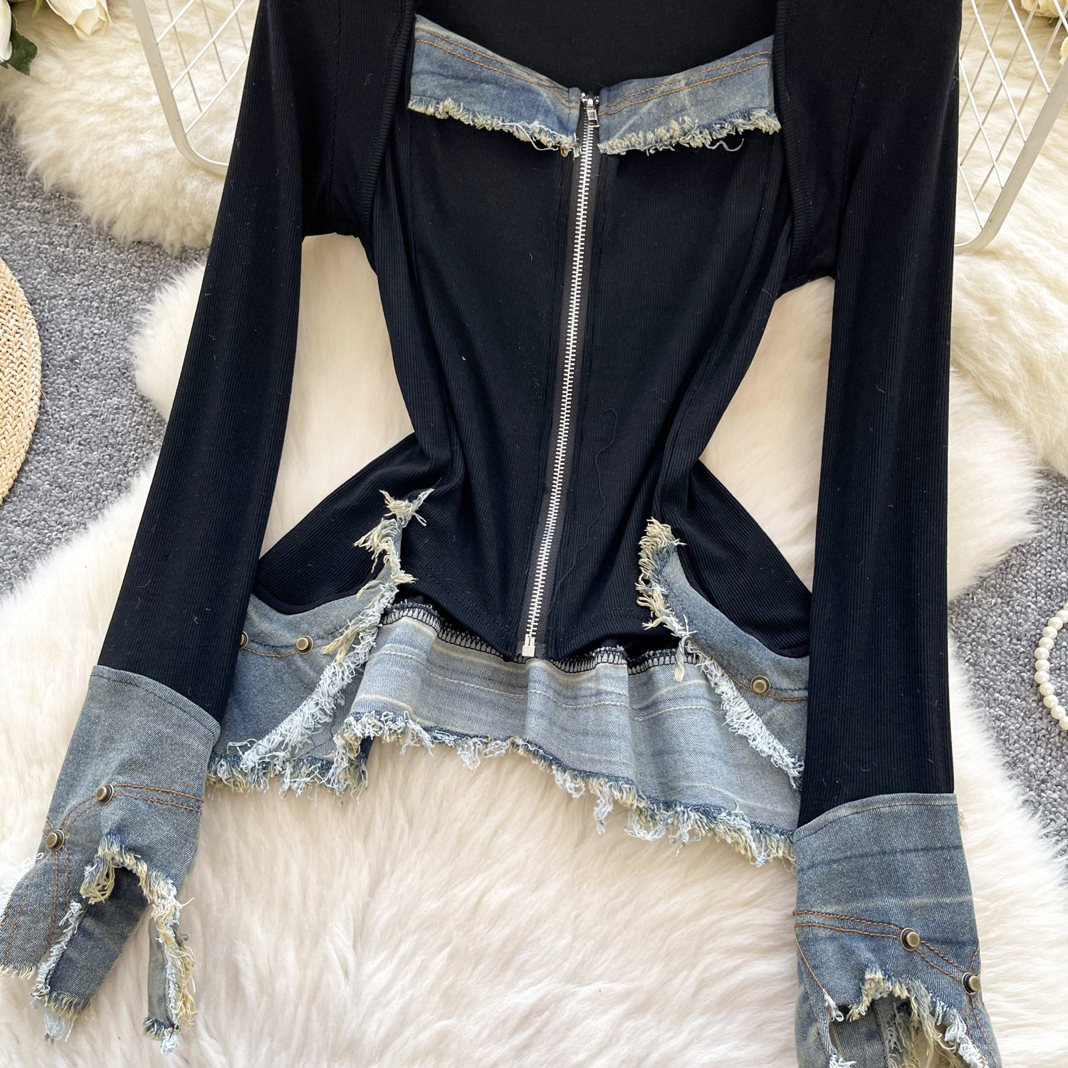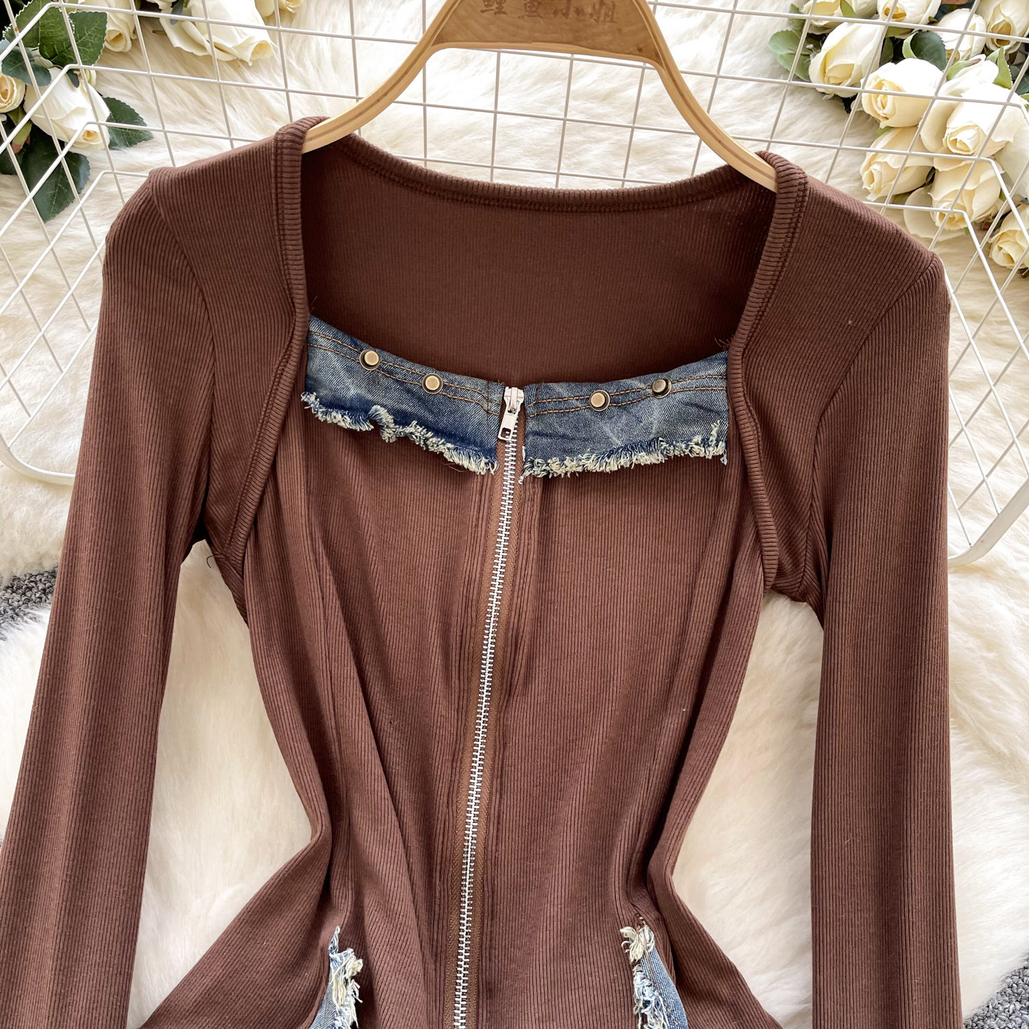 Autumn Full Sleeve Others Collar Casual Denim Blouses Women Patchwork Zippers Shirts Ladies Retro Tops Clothes Women Wholesale